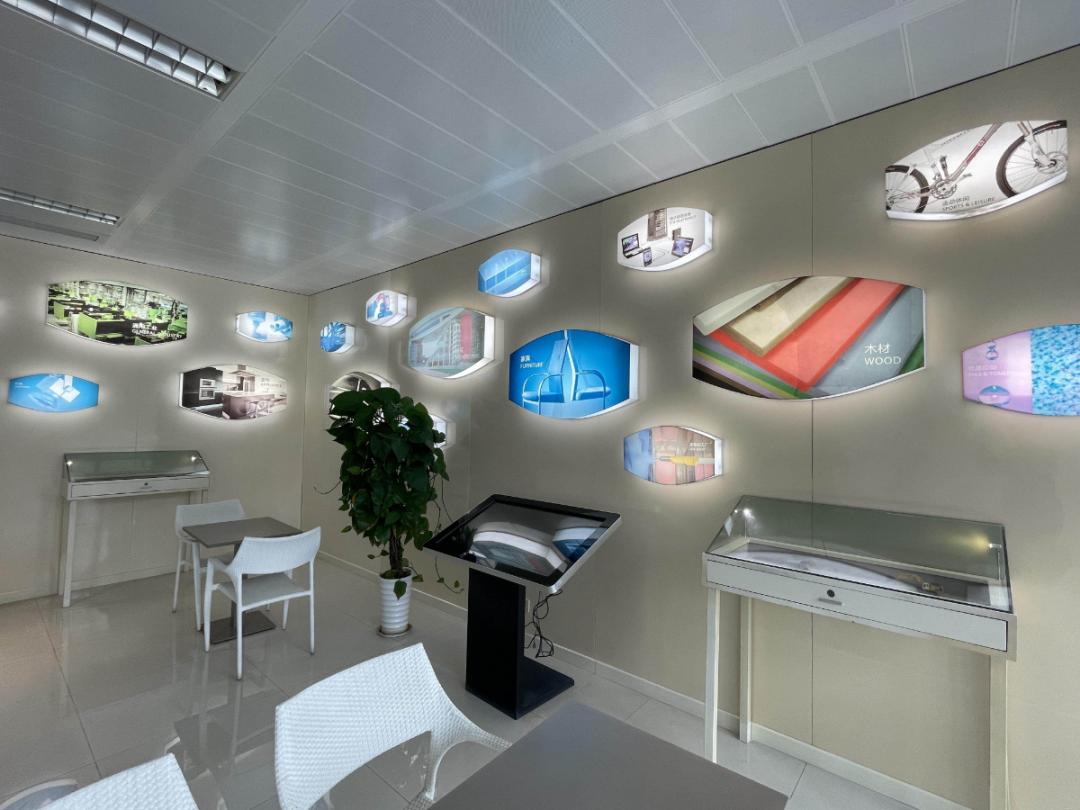 佛冈老虎新材料展厅内,展示了产品的应用领域。